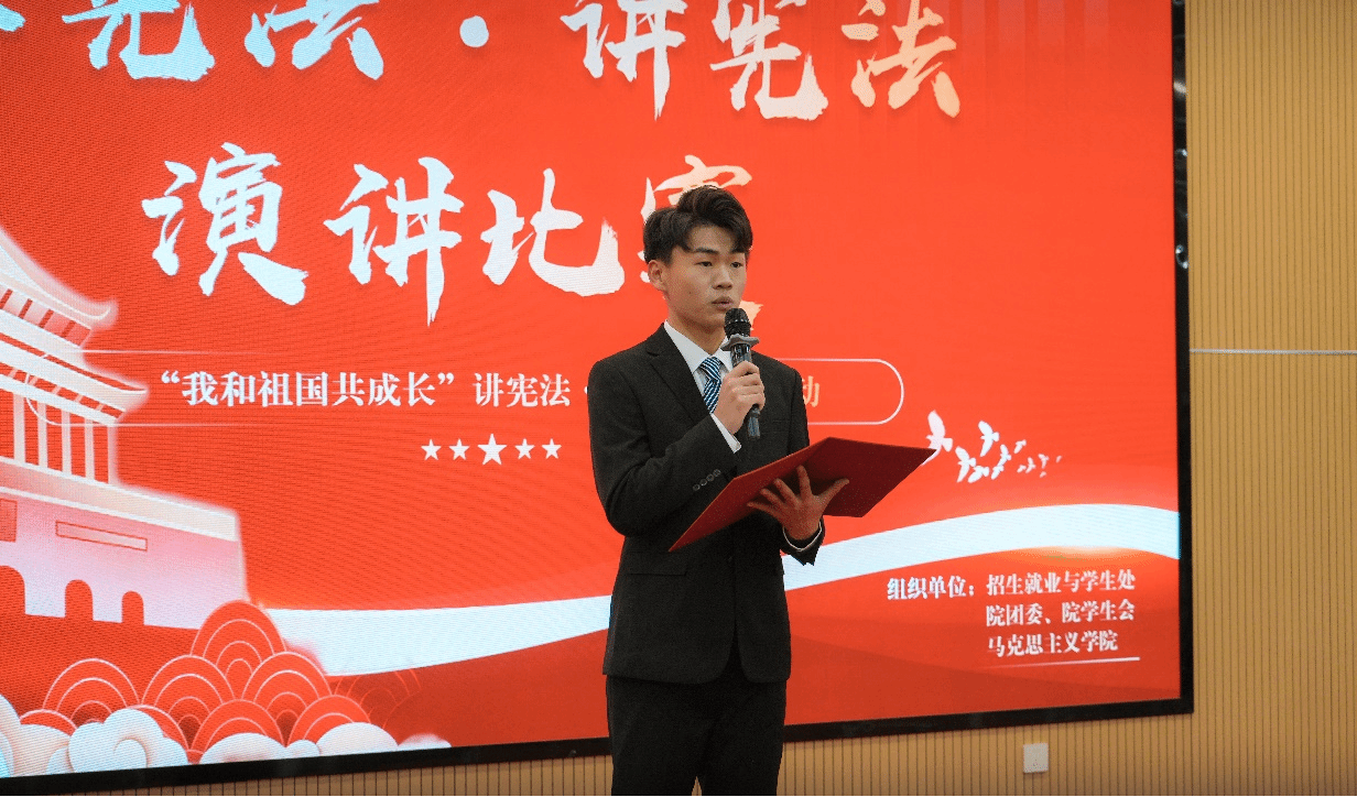 “宪法活动燃校园,我和祖国共成长”——学院举办宪法演讲比赛 为进一步弘扬宪法精神,维护宪法权威,提高全院师生宪法意识,12月12日下午,我院“学宪法,讲宪法”演讲比赛在图书馆报告厅成功举办。活动现场,15位参赛同学围绕宪法主题,分别从文化、国家、社会以及个体等多个角度进行了深入的演讲。他们或从个人成长与祖国发展的紧密联系出发,讲述宪法赋予公民的权利与义务;或从社会热点切入,分析宪法在维护社会稳定、促进公平正义中的重要作用,从不同角度诠释了宪法的内涵和精神,充分展现了我校学子良好的法律素养和积极向上的精神风貌,... 2024-12-16