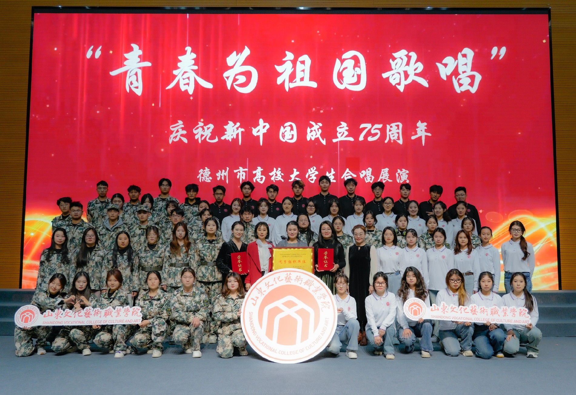 喜报!我院合唱团荣获三等奖! 12月11日,由共青团德州市委主办的“青春为祖国歌唱”庆祝新中国成立75周年合唱演展活动在德州职业技术学院隆重举行。当天,来自全市多所高校的15支合唱团齐聚一堂,用激昂的歌声唱响对祖国的美好祝愿。我院“文职院合唱团”和“文职新声”合唱团两支队伍,经过激烈的角逐和专业的评审,分别荣获三等奖。我院被授予优秀组织单位荣誉称号。此次活动的成功举办,不仅丰富了大学生们的校园文化生活,更激发了他们的爱国情怀和民族自豪感。... 2024-12-12