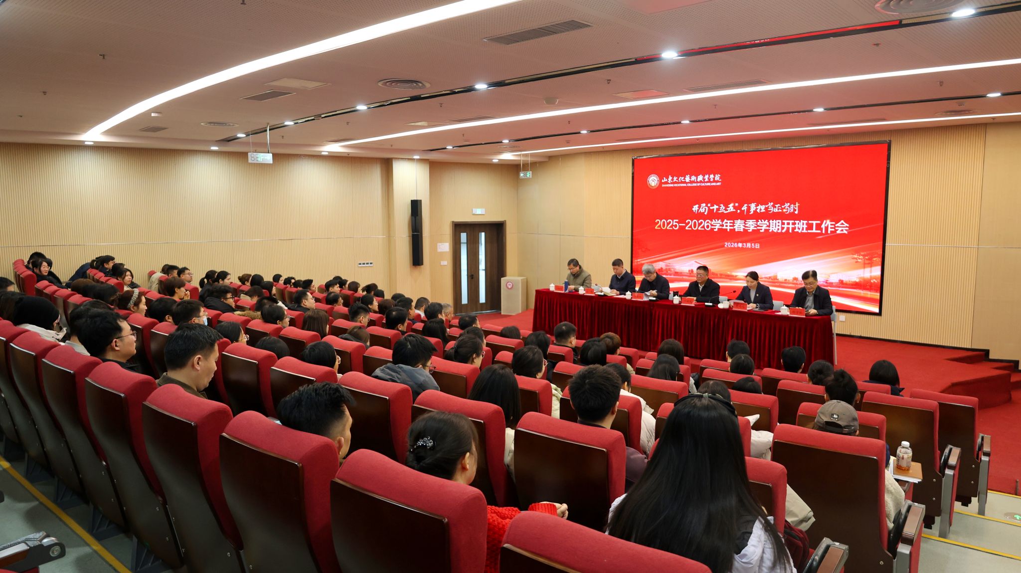 开局“十五五”干事担当正当时——山东文化艺术职业学院召开新学期开班工作会 3月5日,学院召开2025-2026学年春季学期开班工作会。学习贯彻全省干事创业担当尽责确保“十五五”开好局工作会议、省文化和旅游厅新春读书班等会议精神,总结过去一年奋斗历程,擘画新学期发展蓝图。学院领导班子成员、全体教职员工参加会议。党委书记张东林作动员讲话。会上,全体教职员工共同观看了师德师风警示教育片;宣布了省文化和旅游厅关于学院副处级领导干部任职的决定;对2025年度先进部门和先进工作者进行了表彰颁奖。会议指出,... 2026-03-05