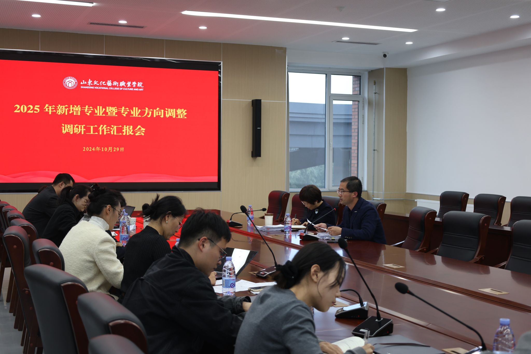 擘画未来,赋能创新:我院召开2025年新增专业暨专业方向调整调研工作汇报会 着眼未来挑战,聚力专业建设。10月29日下午,学院召开2025年新增专业暨专业方向调整调研工作汇报会,学院副院长王振林出席会议。专业布局再扩容,深耕细作育英才。我院专业调研工作亮点纷呈,艺术类专业百花齐放、技术类专业深耕行业前沿、文化传承与创新双轨并行。12位专业负责人从新增专业的人才需求、行业发展现状与趋势、同类专业现状调研、专业培养目标定位、人才培养方案设置、办学条件、毕业生就业质量及未来建设方向等方面进行了详细的汇报。... 2024-10-31