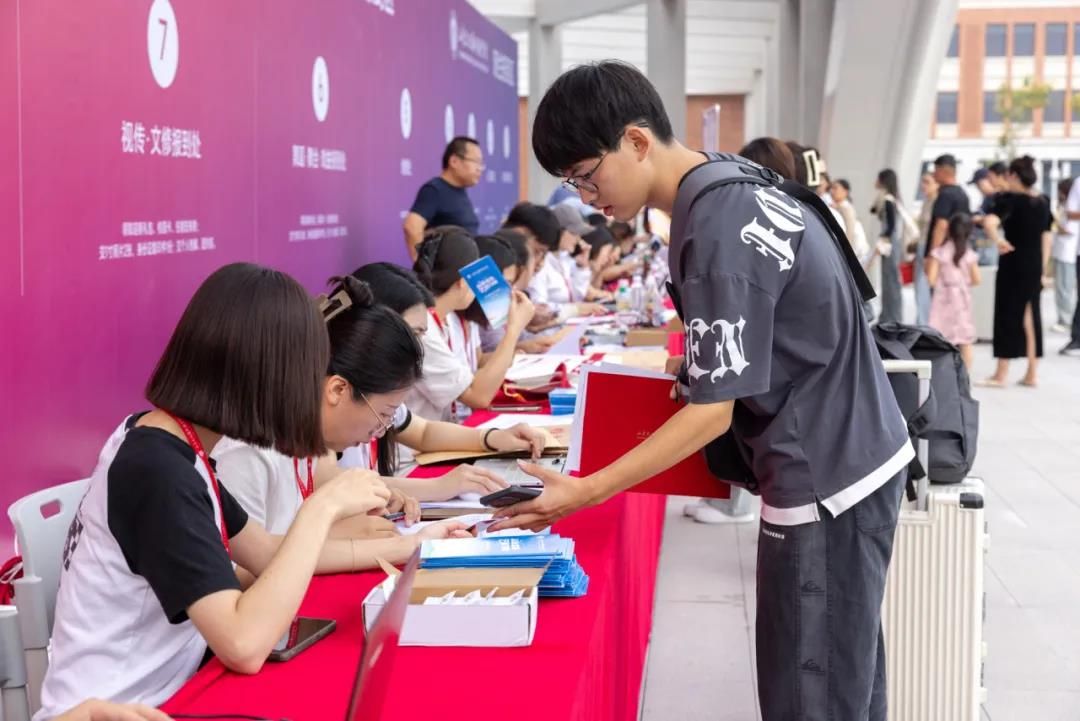新生与家长们漫步其间,不时停下脚步,用相机定格下这些充满意义的瞬间,为入学首日留下了宝贵的记忆。学院还为新生准备了包含帆布包、漆扇、信封、钥匙扣、书签尺、小夜灯、手机支架在内的新生大礼包,每一样物品都印有学院相关的文创设计,散发着学院的独特的文化魅力。