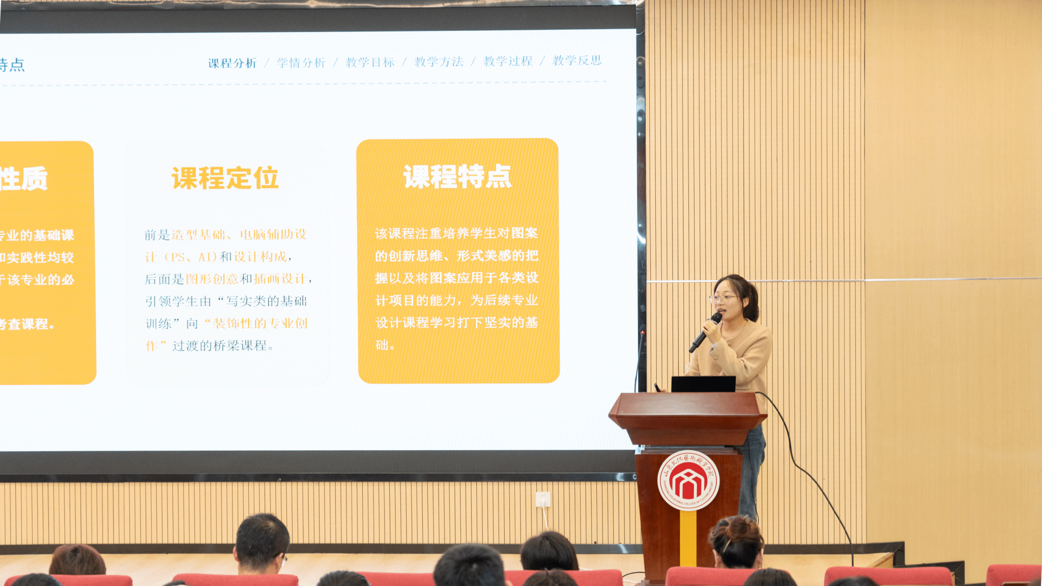 周乔俏老师说课体会:能够作为艺术设计系三名教师代表之一参加本次教师说课展示活动,我深感责任重大,亦收获颇丰。通过本次说课,我对于《字体与版式设计》课程中“三融”创新点与民主课堂、专业实践有了更深度的理解。未来,我将继续秉持初心,不断学习,希望能为提升教学质量、服务学院发展贡献更大的力量。