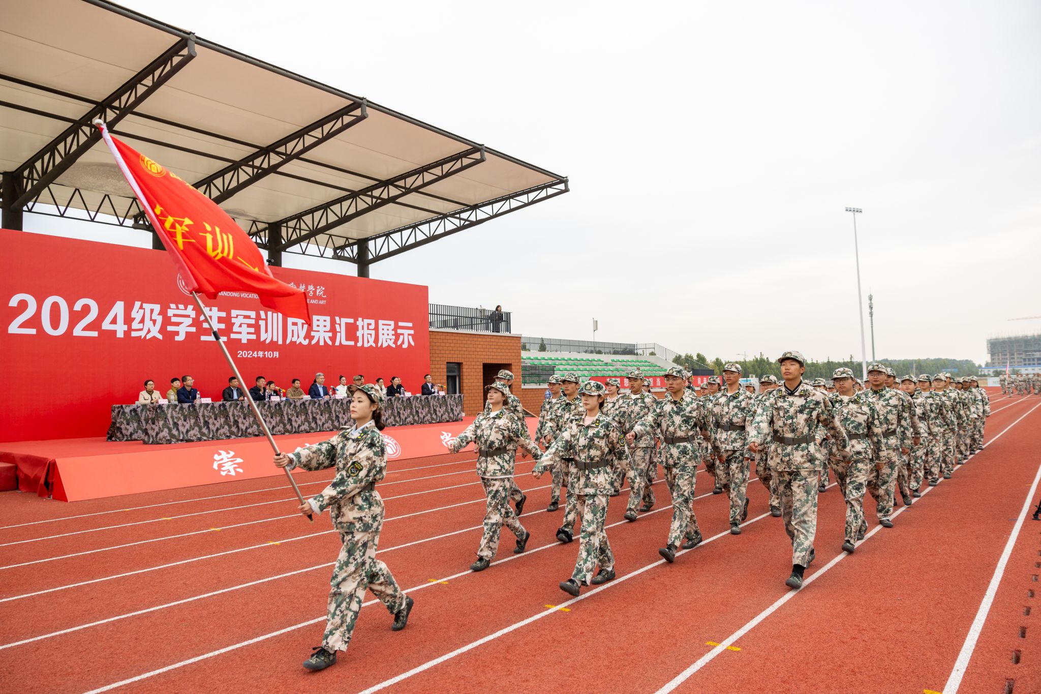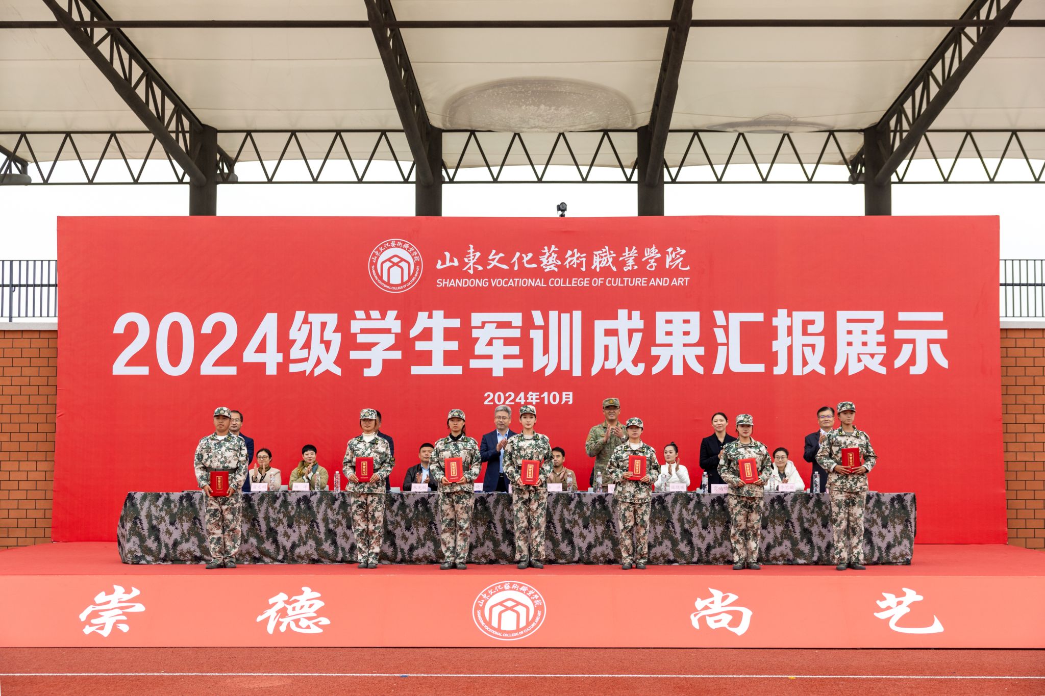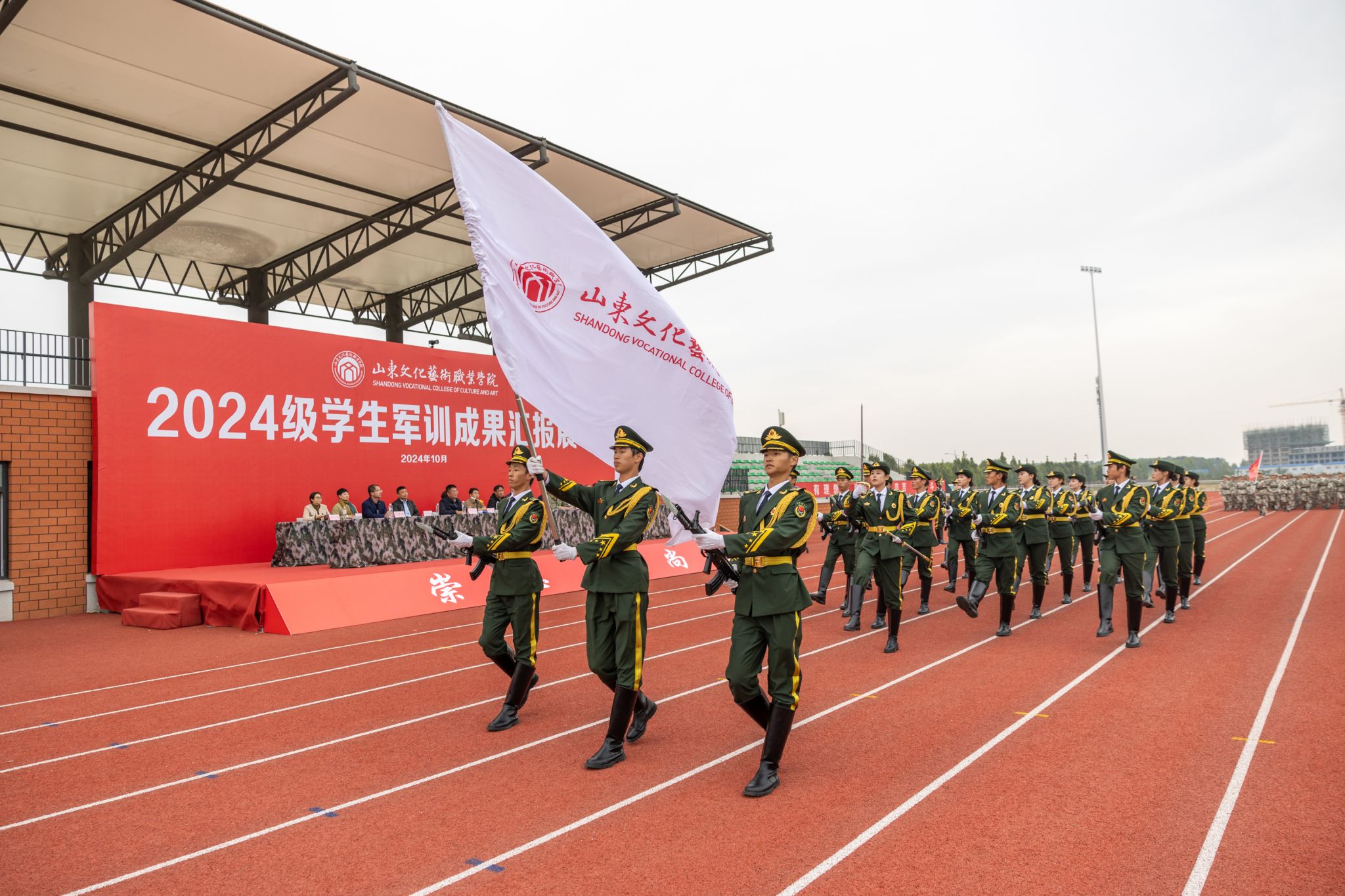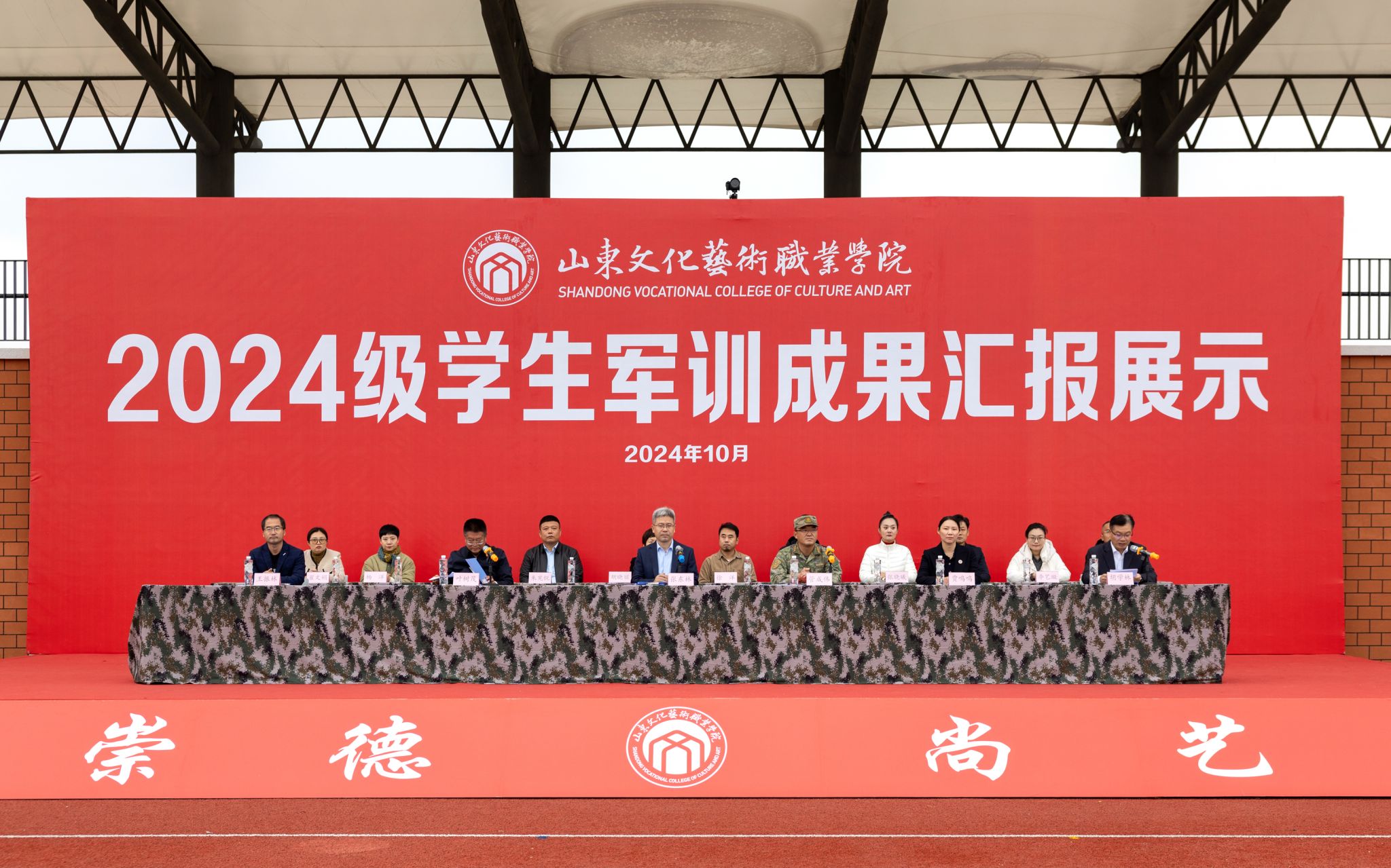 10月21日,山东文化艺术职业学院2024级学生军训成果汇报展示活动在学院田径运动场隆重举行,学院临时党委书记张东林出席活动并讲话,院领导叶树茂、贾鸣鸣、王振林、胡学林参加活动,学院副书记叶树茂宣读《2024级学生军训表彰决定》,学院纪委书记胡学林主持活动。出席本次活动的还有承训部队首长、学院各职能处室、系部临时负责同志。