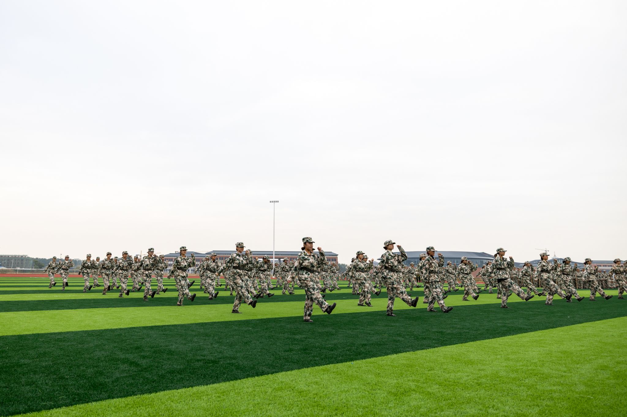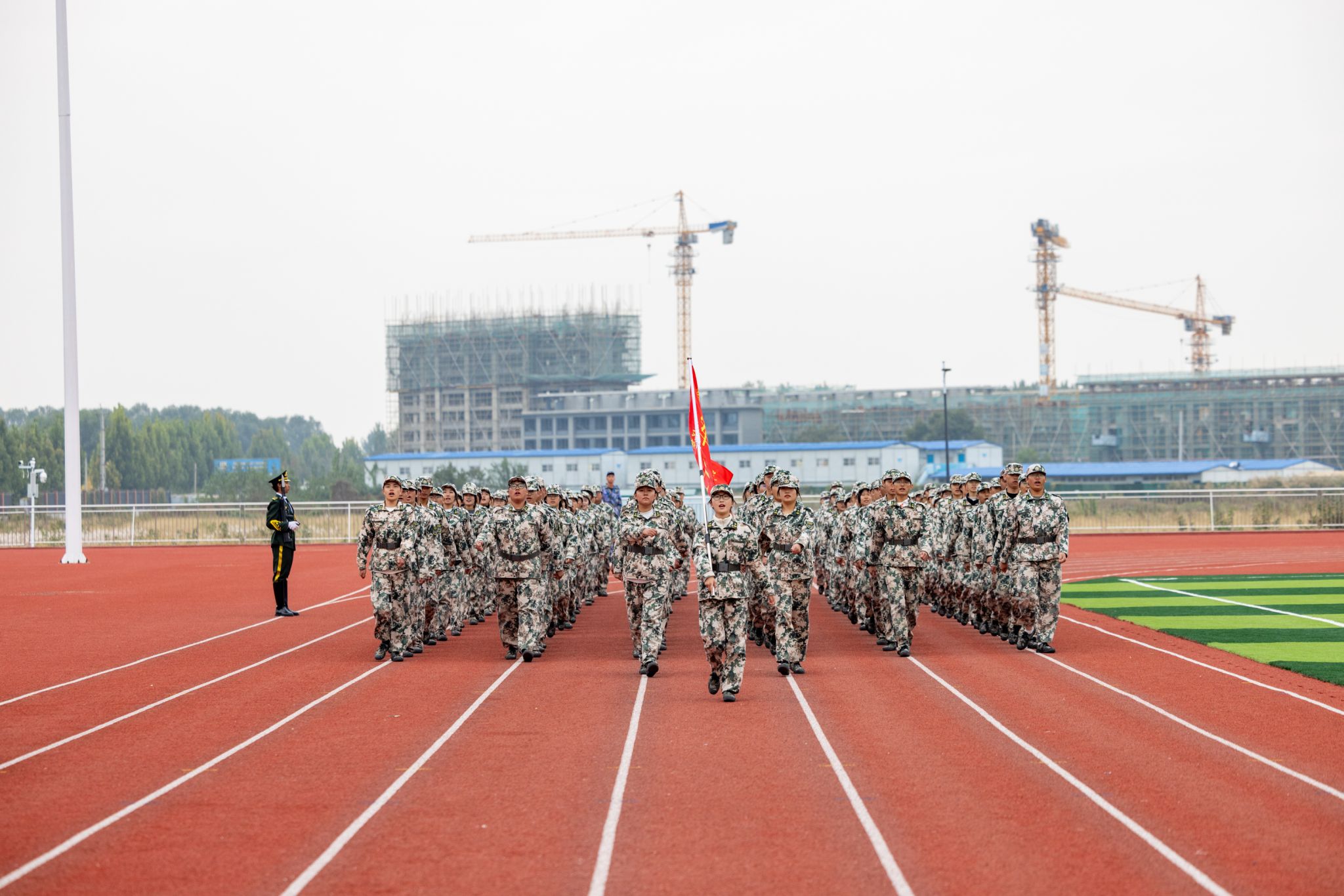 活动首先举行了庄严的升国旗、奏唱国歌仪式,以国旗护卫队为先导的六个方阵依次走过主席台接受检阅,同学们嘹亮的口号、挺拔的身姿、整齐的队列,充分展现出军训期间刻苦训练的成果,彰显出文职院学子良好的精神面貌和本次军训的丰硕成果。