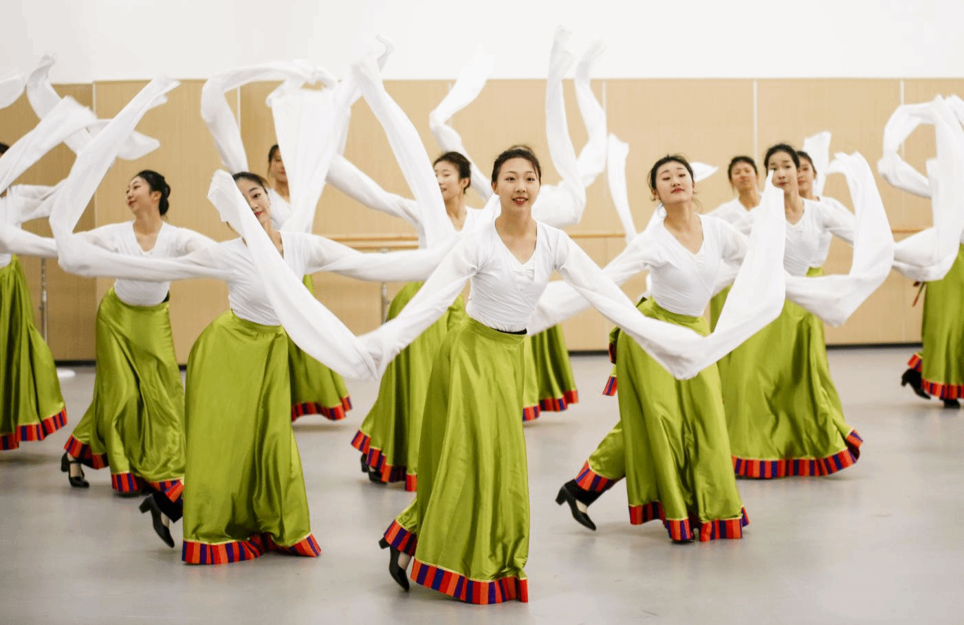 中国民族民间舞是舞蹈表演专业的专业核心课,本次汇报展示了藏族舞蹈组合《库玛拉》《弦子》。在课堂教学中,教师对藏族舞蹈的动作动律、表演特点进行了系统教学,教师在教学过程中注重课程思政,把思政元素融入专业教学,培养学生传承发展中华优秀传统文化。任课教师为:王金敏(女班),白亮(男班)。