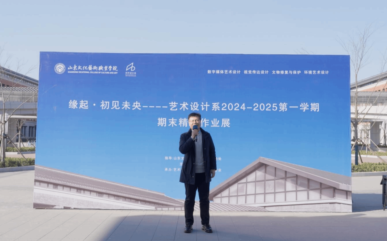 寒凝大地、春华待发。1月9日,学院首届学生期末精品作业展盛大启幕,展现了学生们的匠心独运与创新精神,为学院文化生活增添了浓墨重彩的一笔。学院副院长王振林、学院纪委书记胡学林出席开幕式并致辞,随后师生共同参观精品作业展。