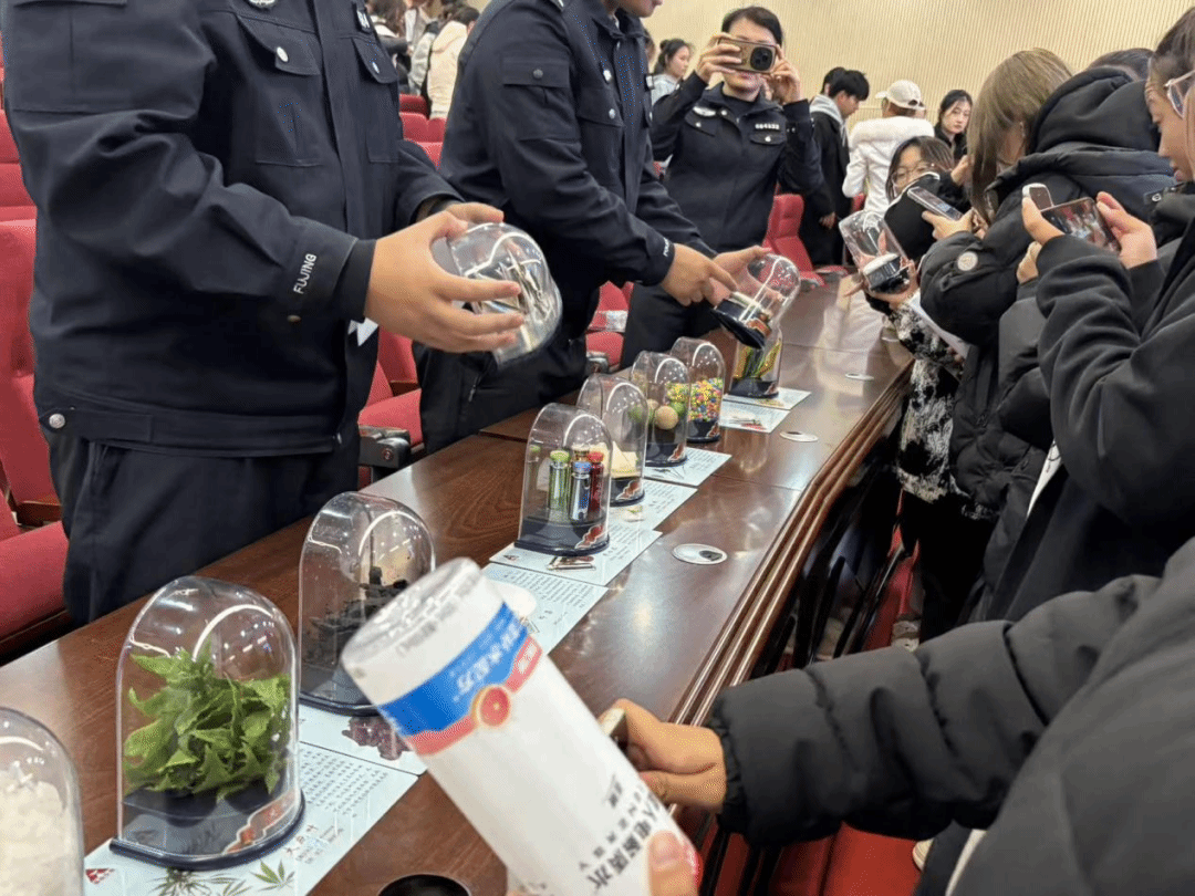 现场展示了多种毒品模型,同学们积极参与互动。通过这种生动直观的教育形式,大家更加清晰地认识到毒品的危害,进一步筑牢了心理防线。