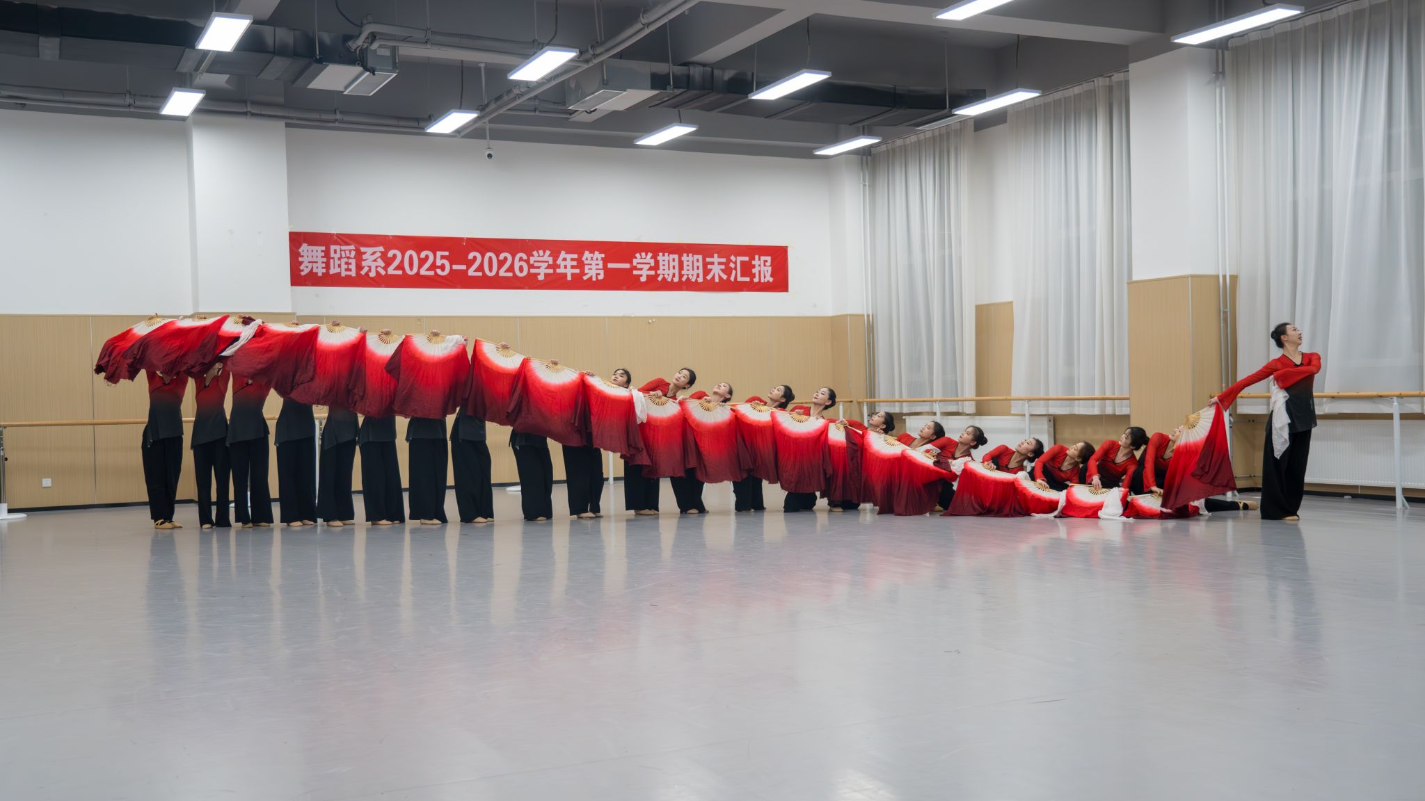 1月14-15日,舞蹈系2024级、2025级舞蹈表演、歌舞表演、国际标准舞三大专业完成期末汇报。汇报涵盖中国古典舞基训、中国民族民间舞、声乐、舞蹈基础、拉丁与摩登基本功等核心课程,既严格考察学生专业技巧的规范性,也着重挖掘艺术表现力与创新思维。此次展示充分体现了舞蹈系“深耕教学、注重内涵”的培养理念,彰显了学生“功底扎实、素养全面”的育人成果,也是对阶段性教学质量的全面复盘。