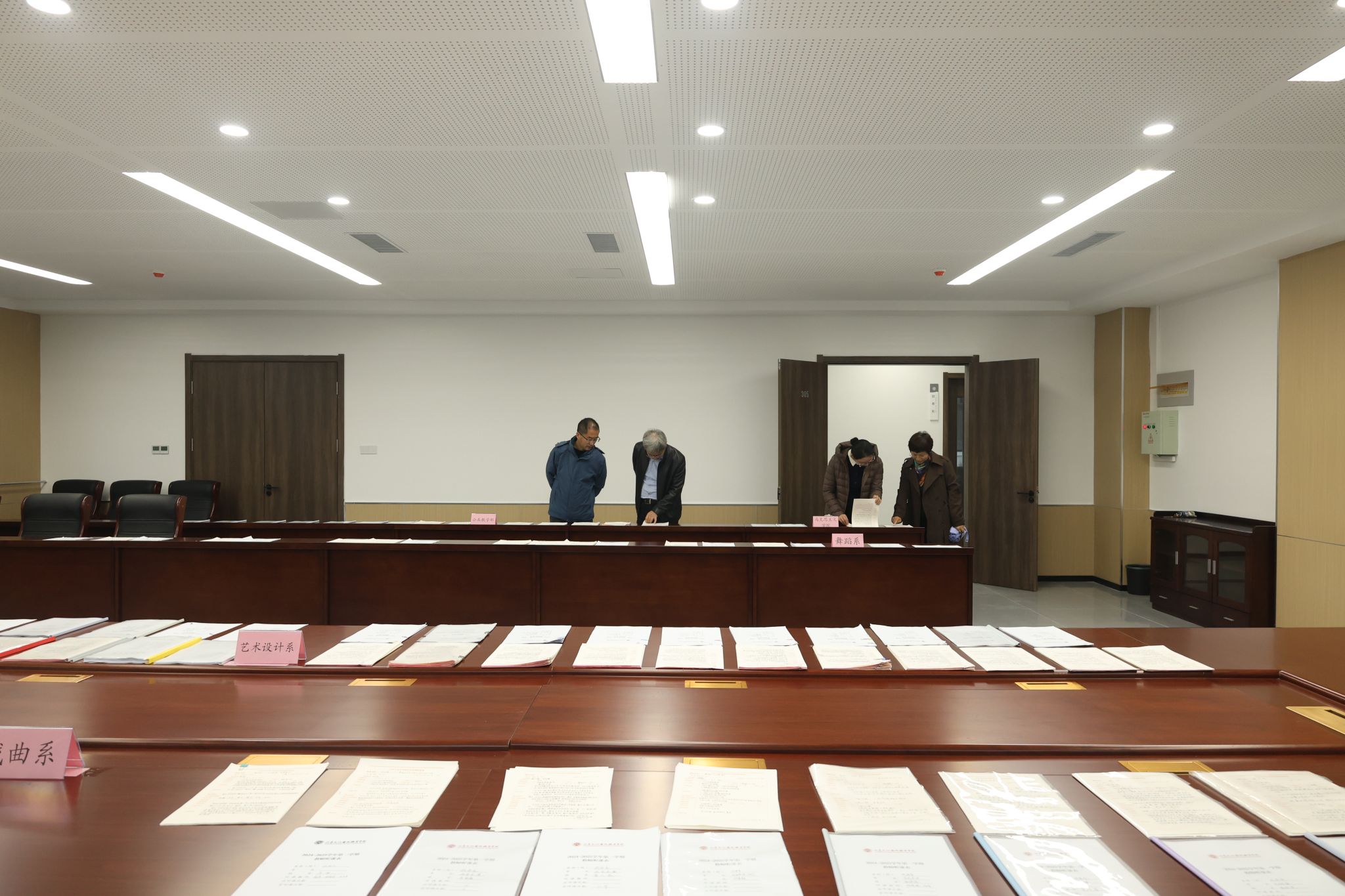11月13日下午,首轮结课(阶段)课程汇报会于综合楼216召开。来自公共教学部、马克思主义学院、戏曲系、舞蹈系和艺术设计系的12位教师围绕着课程概述、课程目标达成效果、教学组织过程与方法、课程改进展望四个维度展开汇报。14日上午,与教学检查同步展开的学生优秀作品展在图书馆布展完成,学院(筹)临时党委书记张东林,副院长贾鸣鸣、王振林前往参观指导。15日下午,张东林、贾鸣鸣前往舞蹈系观摩指导课程汇报演出。