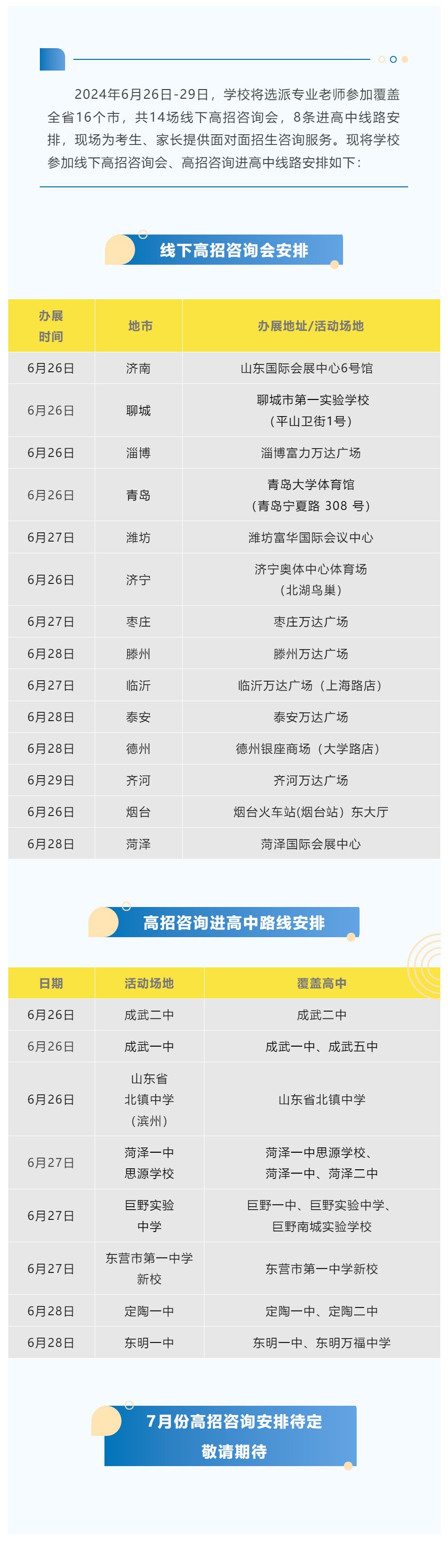 招生季 | 山东文化艺术职业学院2024年参加线下高招咨询会、高招咨询进高中线路安排