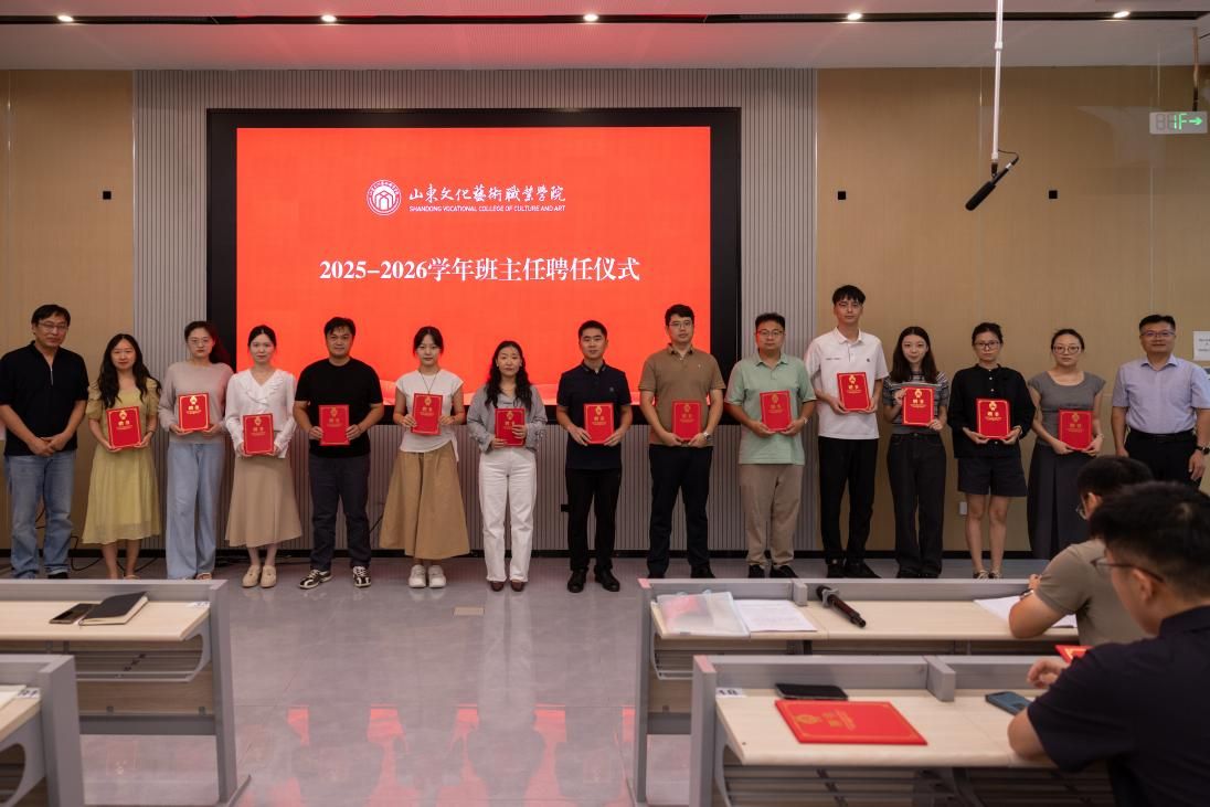 学院举办 2025-2026年度辅导员、班主任聘任仪式 为进一步加强我院辅导员、班主任队伍建设,提高学生管理队伍育人意识、履职能力和工作水平,8月31日,招生就业与学生工作处在报告厅举办2025-2026学年学院辅导员、班主任聘任仪式。学院纪委书记胡学林、招生就业与学生工作处负责人刘从森出席活动并讲话。各学生管理负责人、招生就业与学生工作处全体人员参加聘任仪式,活动由杨国缝主持。聘任仪式共四项内容。第一项,刘从森宣读《山东文化艺术职业学院关于聘任2025-2026学年辅导员、... 2025-09-01