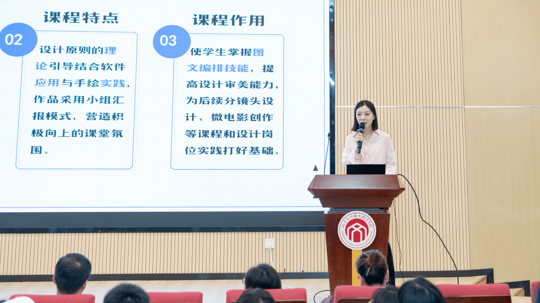 周乔俏老师说课体会:能够作为艺术设计系三名教师代表之一参加本次教师说课展示活动,我深感责任重大,亦收获颇丰。通过本次说课,我对于《字体与版式设计》课程中“三融”创新点与民主课堂、专业实践有了更深度的理解。未来,我将继续秉持初心,不断学习,希望能为提升教学质量、服务学院发展贡献更大的力量。