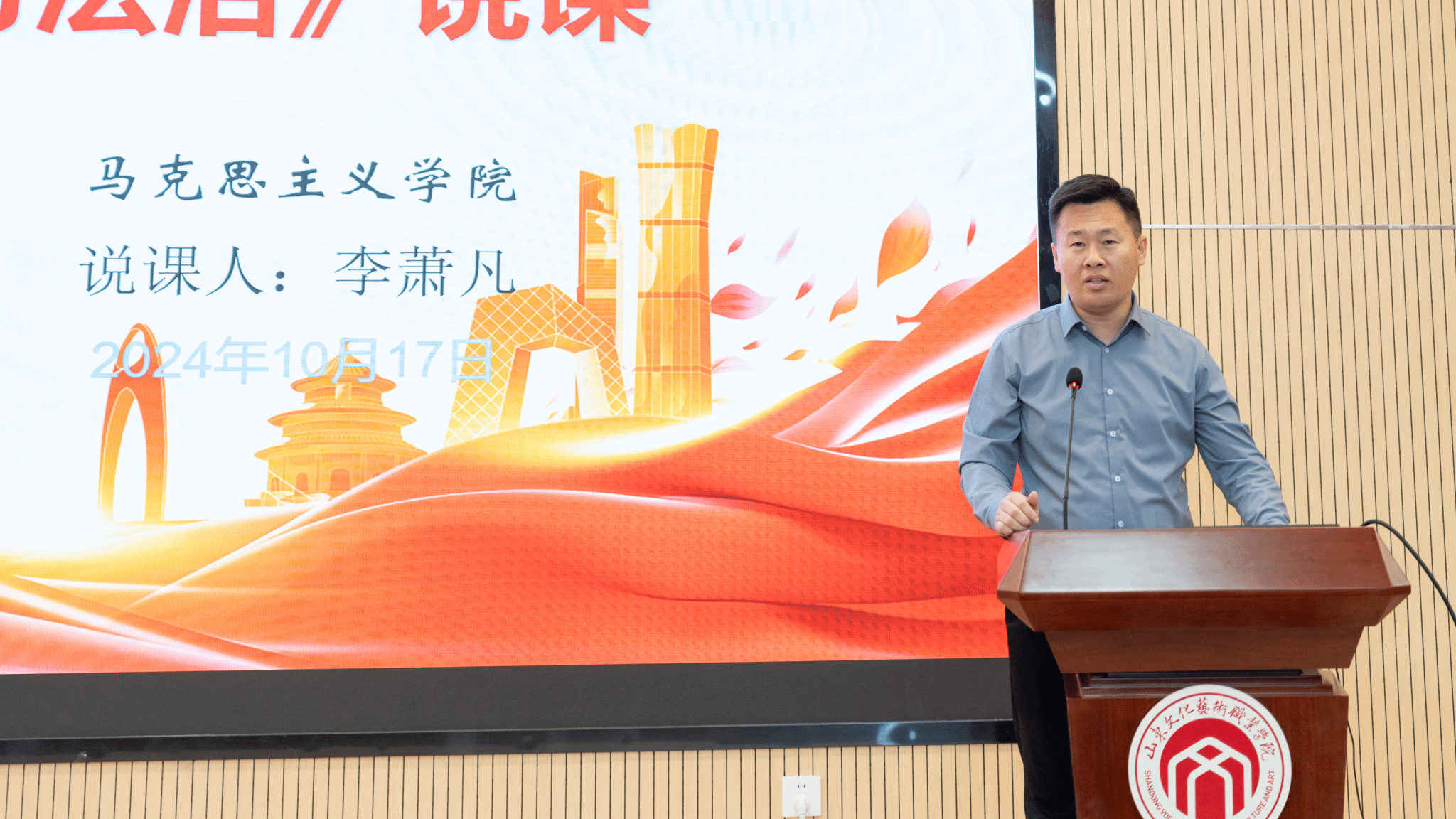以说促教,为课赋能。为提升教师教学能力,展示期初教学准备工作,10月17日上午,学院开展第一次教师说课展示活动,学院副院长王振林出席活动。