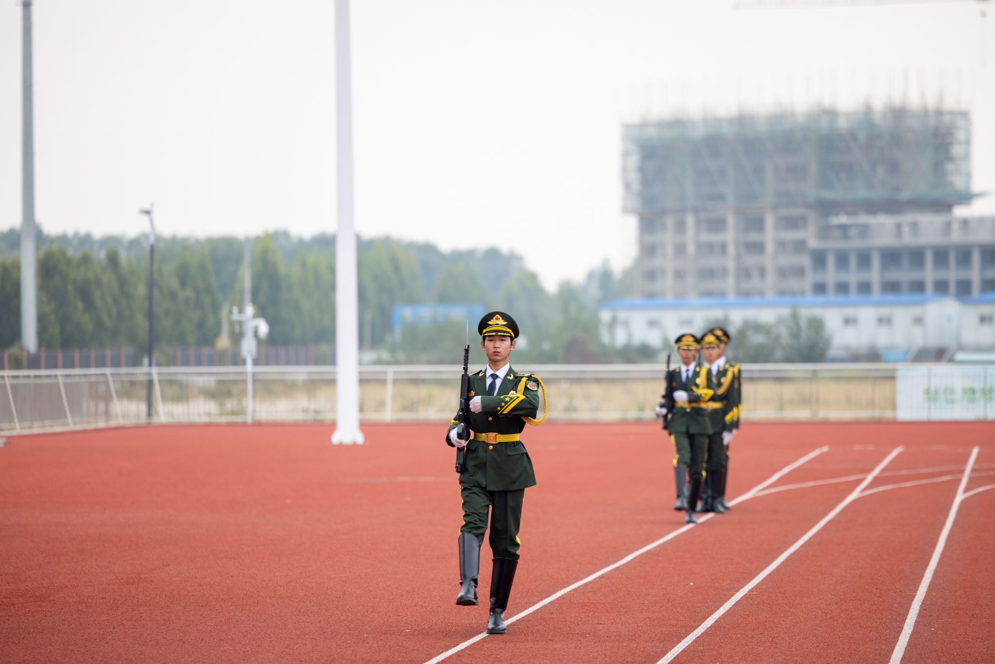 活动首先举行了庄严的升国旗、奏唱国歌仪式,以国旗护卫队为先导的六个方阵依次走过主席台接受检阅,同学们嘹亮的口号、挺拔的身姿、整齐的队列,充分展现出军训期间刻苦训练的成果,彰显出文职院学子良好的精神面貌和本次军训的丰硕成果。