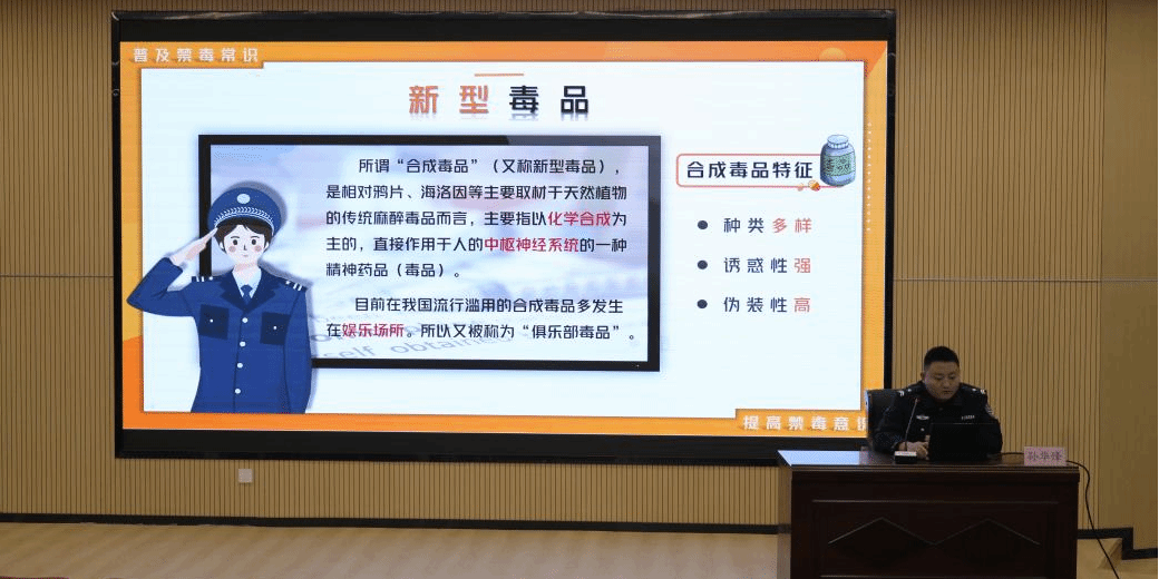 活动现场,禁毒宣讲员孙警官用通俗易懂的语言,对毒品的发展、种类、毒性、识别特征进行了详细讲解,并通过分享自己工作中遇到的案例,深入浅出地阐述了毒品的危害性和成瘾性。