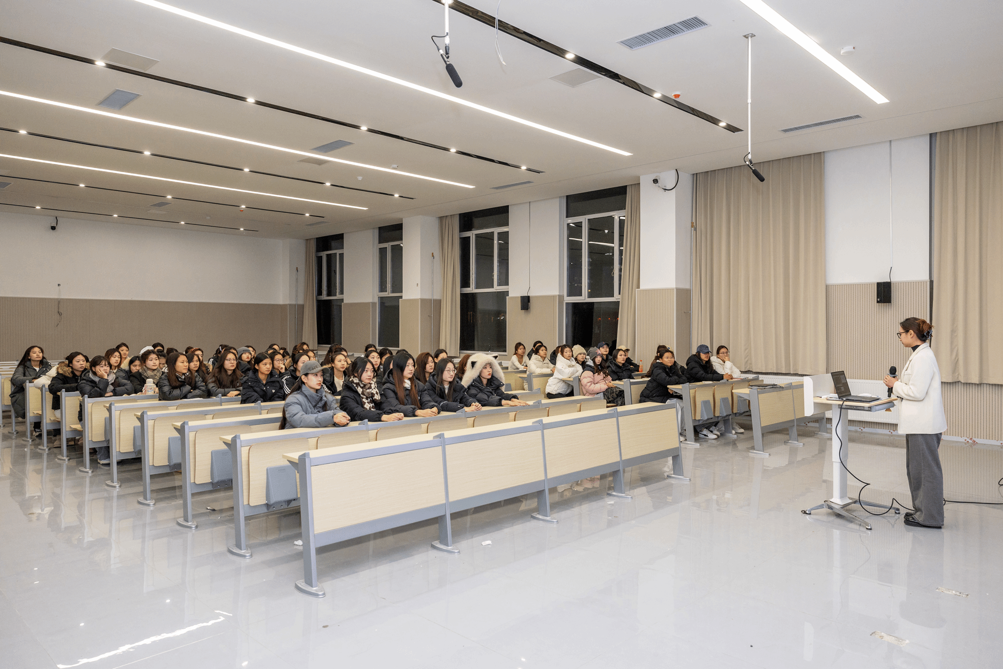 2024年12月5日19点,舞蹈系《大河舞约》系列活动在雅园报告厅顺利开展。青年教师严唯嘉以《走进中国古典舞的四大流派》为题,与学生们进行了一场别开生面的趣味课堂。舞蹈系全体学生到场学习,认真记录笔记,与老师积极互动。