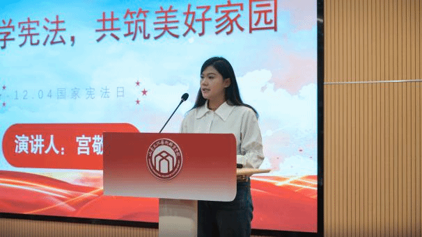 活动现场,15位参赛同学围绕宪法主题,分别从文化、国家、社会以及个体等多个角度进行了深入的演讲。他们或从个人成长与祖国发展的紧密联系出发,讲述宪法赋予公民的权利与义务;或从社会热点切入,分析宪法在维护社会稳定、促进公平正义中的重要作用,从不同角度诠释了宪法的内涵和精神,充分展现了我校学子良好的法律素养和积极向上的精神风貌,共同开展了一场别开生面的宪法教育课。