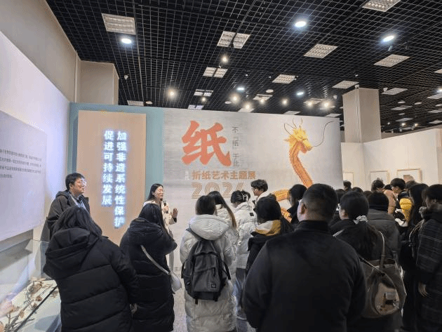 在济南市文化馆,参观了不“纸”于此折纸艺术主题展。展览以折纸艺术为载体,展示了艺术家们如何运用纸张这一简单材料,创造出形态各异、富有创意的艺术作品。策展人陆璐老师为师生详细讲解了整个策展流程与设计创新点。