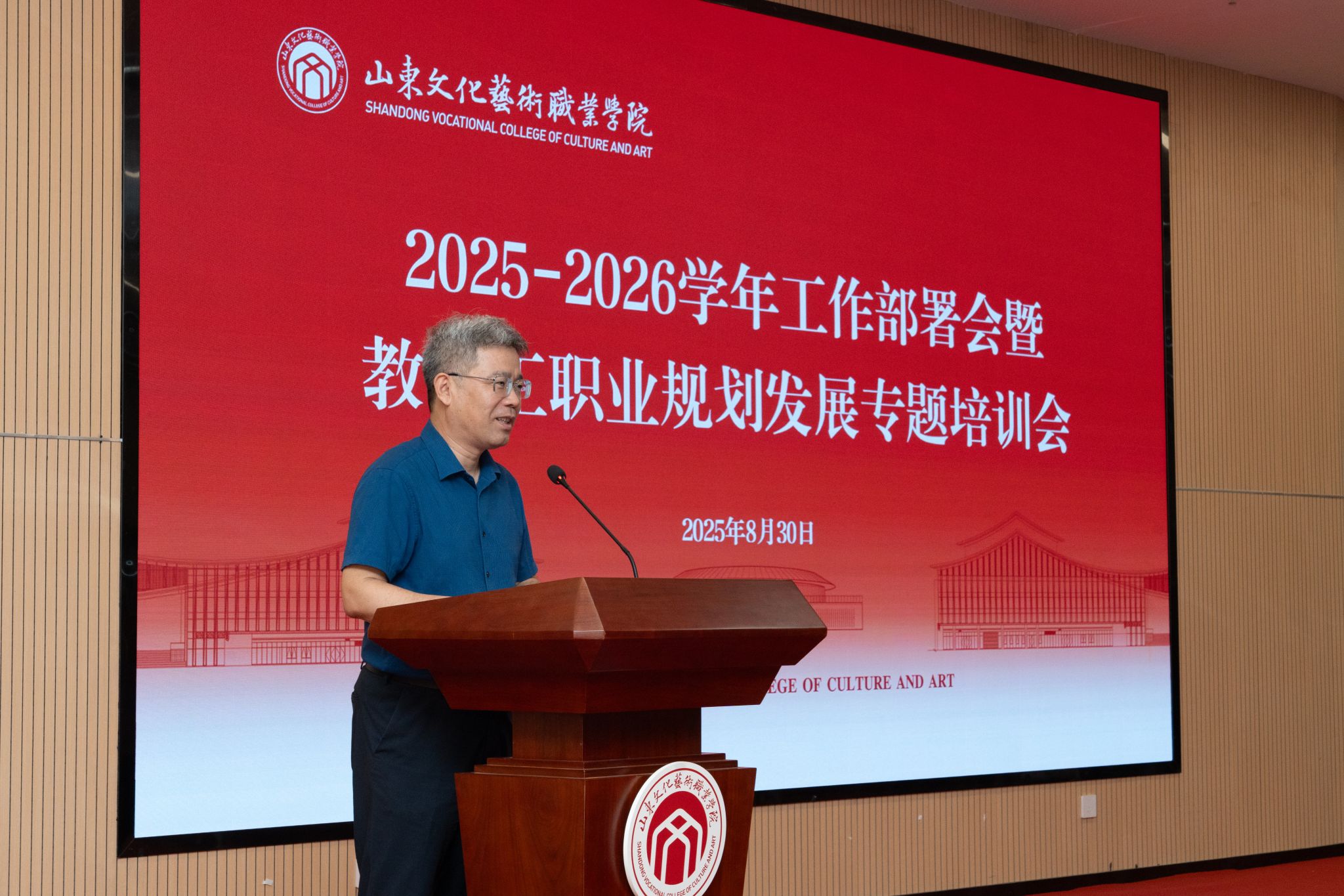 为进一步统一思想、凝聚共识,明确新学年发展方向,确保各项工作高效有序推进,8月30日上午,学院召开2025-2026学年工作部署会暨教职工职业规划发展专题培训会,全面总结上半年及暑期工作,系统部署新学年重点任务与开学安排。学院班子成员及全体教职员工参加会议。