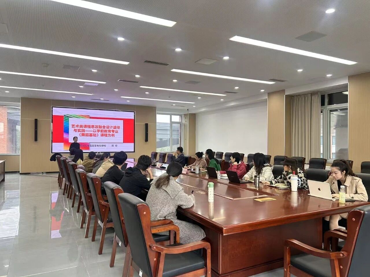 11月24日,综合楼401超热闹!济南幼专周悰副教授,给舞蹈系老师带《舞蹈基础》思政“定制课”——解读政策、教设计、析案例,说得细致又透彻。现场提问超踊跃,周老师耐心拆招,手把手教把思政“藏”进舞蹈里,原来专业课能这么暖。