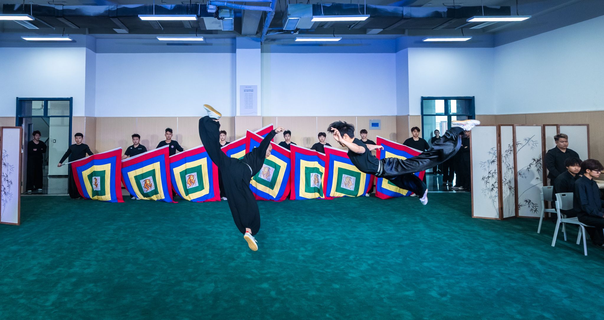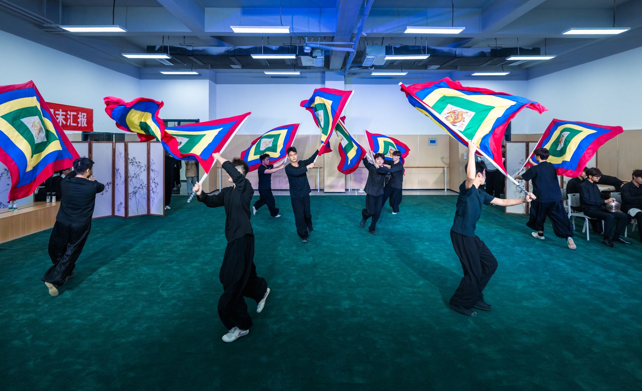 戏曲系汇报通过三个层次分明的节目展示教学成效。京剧曲牌《迎春》旋律明快,传递春之喜悦;打击乐《雁荡山》气势磅礴,还原宏大艺术场景;《精・气・神》集中展示腿功、身训、毯子功等基本功,同时呈现甩发功、帽翅功等特色技艺,扎实的功底与高难度技巧兼具,尽显梨园风采与戏曲传承的“精气神”。