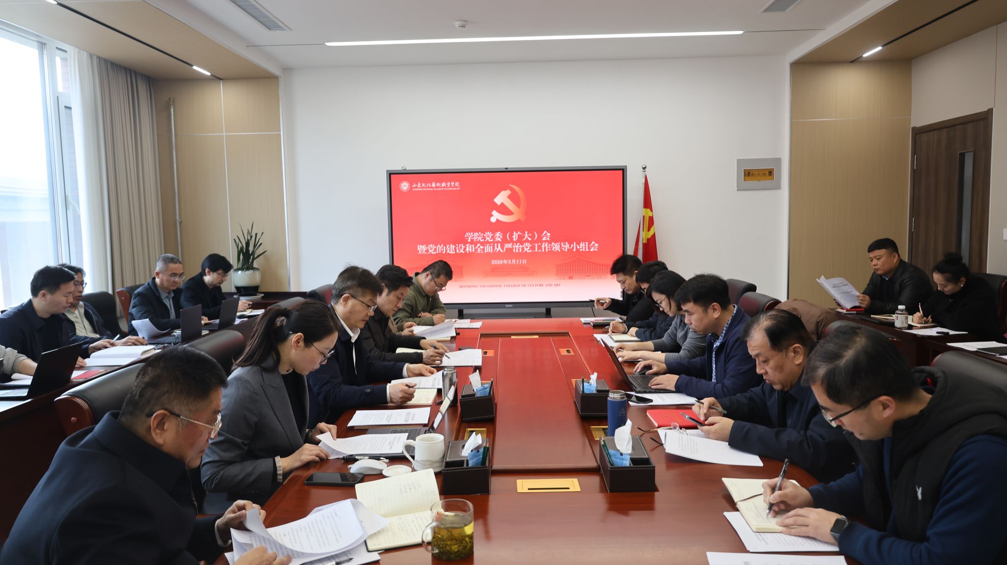 3月11日,山东文化艺术职业学院召开党委(扩大)会暨党的建设和全面从严治党工作领导小组会议,深入学习习近平总书记关于树立和践行正确政绩观的重要论述,传达学习省委、省文化和旅游厅党组贯彻树立和践行正确政绩观会议精神,对全院学习教育进行动员部署。