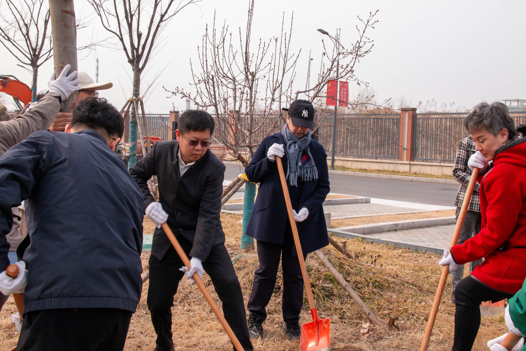 上午10点20分,活动拉开帷幕。活动现场,大家三五人一组,热情高涨、分工协作,挥锹铲土、扶苗填坑、提水浇灌,每一道工序都有条不紊。一棵棵树苗迎风挺立,错落有致,为美丽校园再添生态底色,也种下了大家对绿色家园的美好期盼,孕育着无限希望。