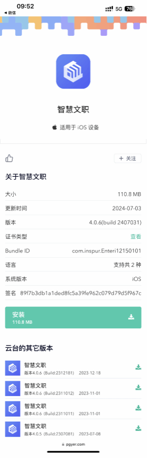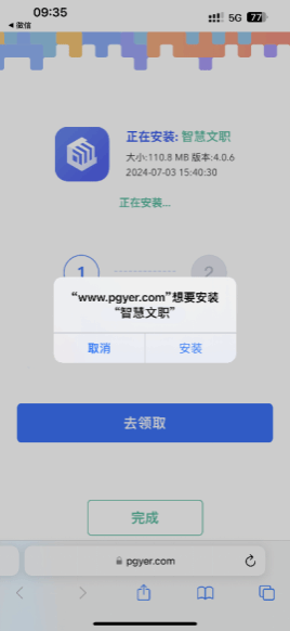 在 Safari 浏览器中打开的安装页面中,您将看到应用的详细信息和一个“安装”按钮。点击“安装”按钮后,系统会弹出安装确认提示,点击“安装”。