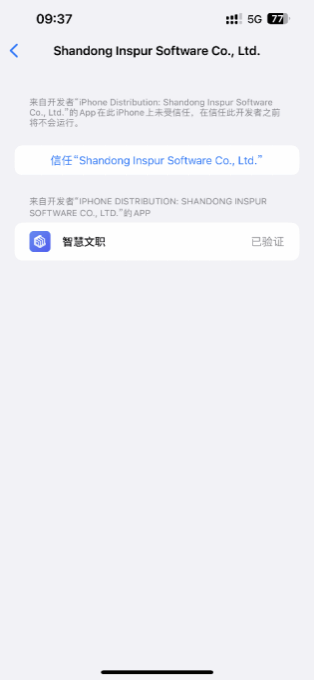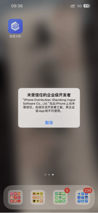 安装完成后,打开应用可能会提示未受信任的企业级开发者信息,您需要手动信任企业级证书。这也只需进行一次,具体操作如下:
