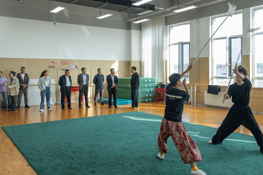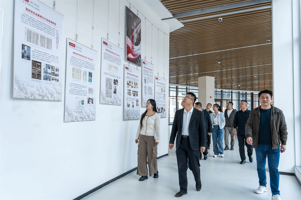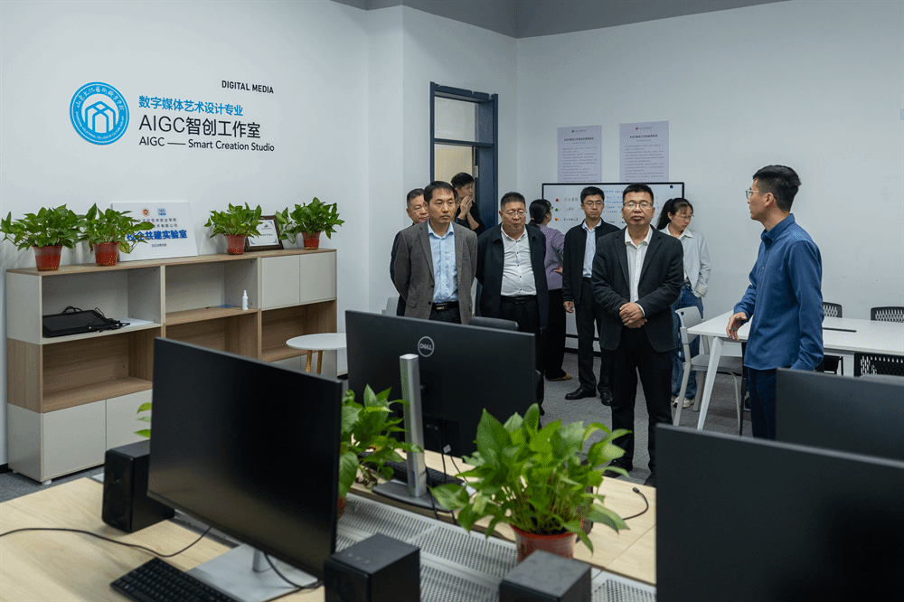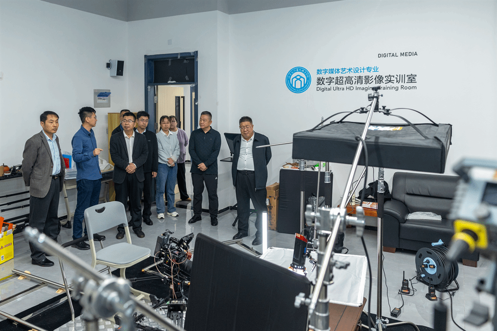 沈仁强一行首先参观了校内人工智能工作室、影像实训室等教学实训场所以及图书馆抗战主题展览和舞蹈、戏曲课堂等场所。