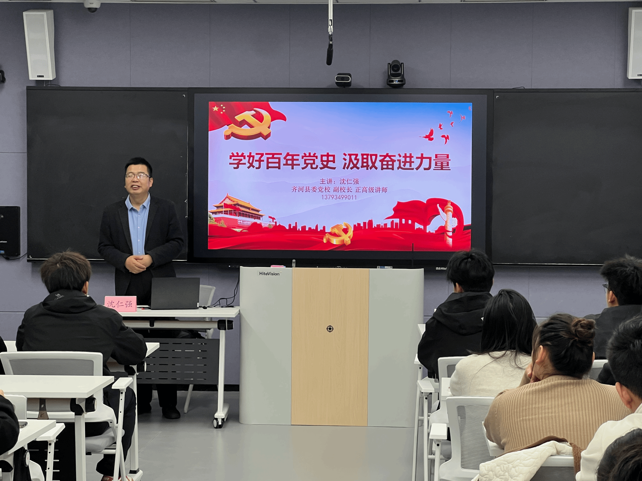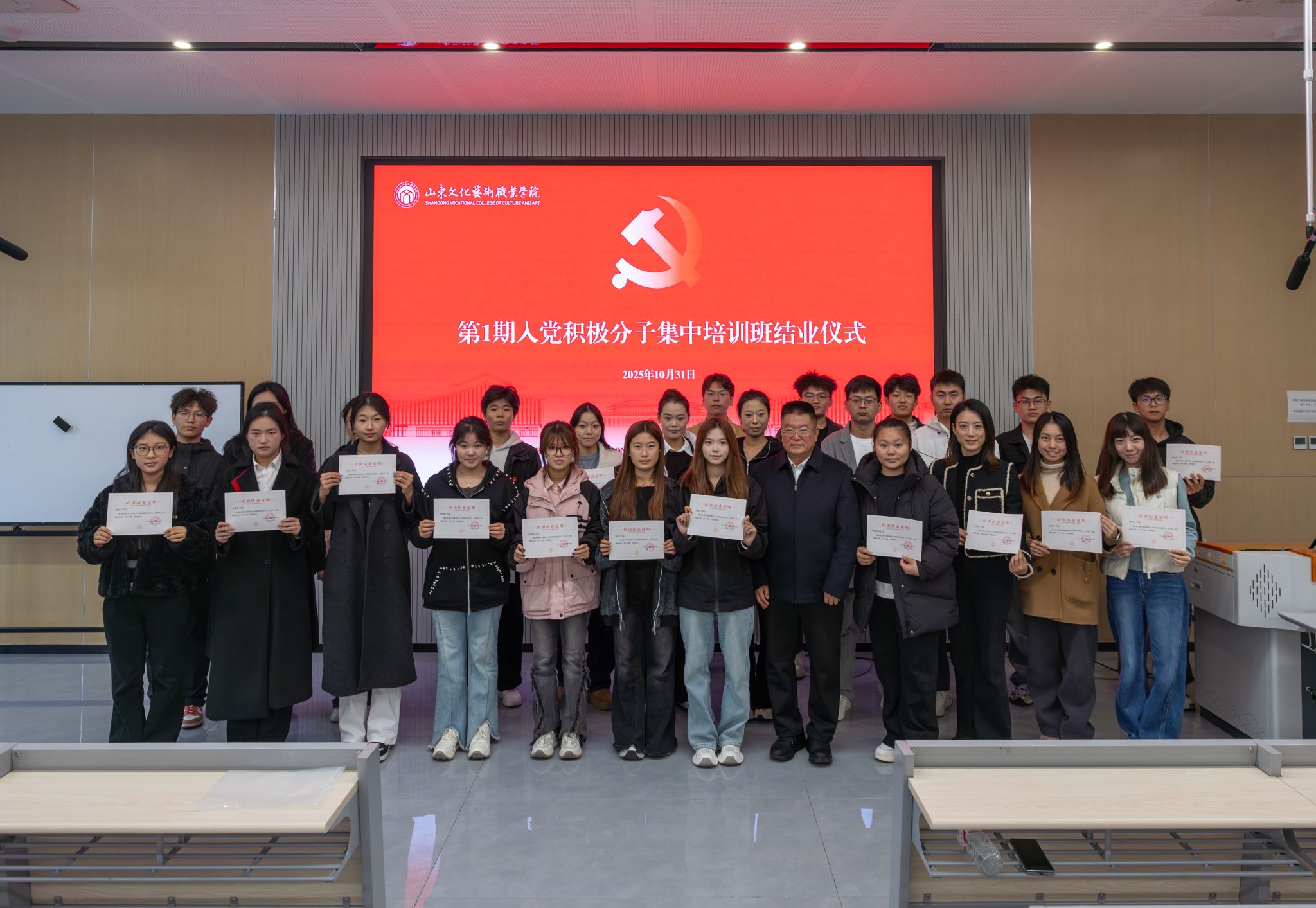 10月29日下午,培训班正式开班,学院党委副书记叶树茂出席开班式并讲话。他指出,本次培训是学院为党育才、提升党员发展质量的重要举措,希望学员们珍惜学习机会,端正学习态度,提高思想认识,筑牢信仰根基,锤炼党性修养。开班式特邀齐河县委党校副校长、正高级讲师沈仁强,以《学好百年党史 汲取奋进力量》为题为全体学员作了一场内容丰富、思想深刻的专题辅导报告,深刻阐释了党的百年奋斗历程和伟大成就,激励学员从历史中汲取前行智慧。